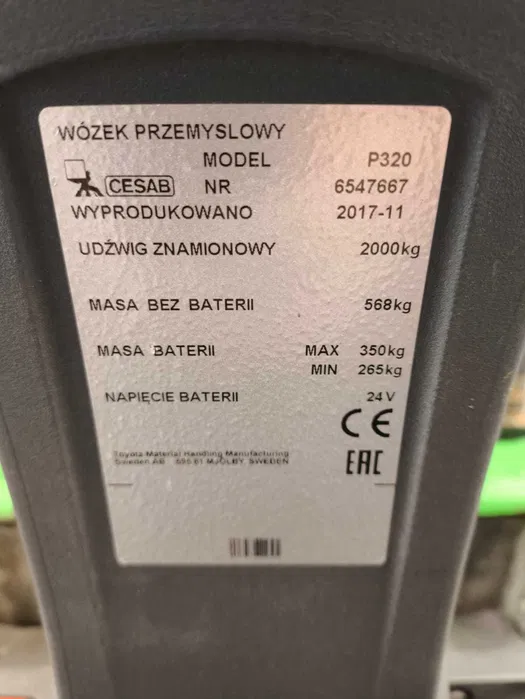 Wózek paletowy elektryczny CESAB P320, Podest, Rydwan